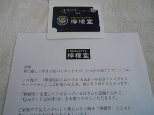 こだわりレモンサワー檸檬堂様より。クオカード当選💰 これでまた檸檬堂を買います🍋 ありがとうございます♪